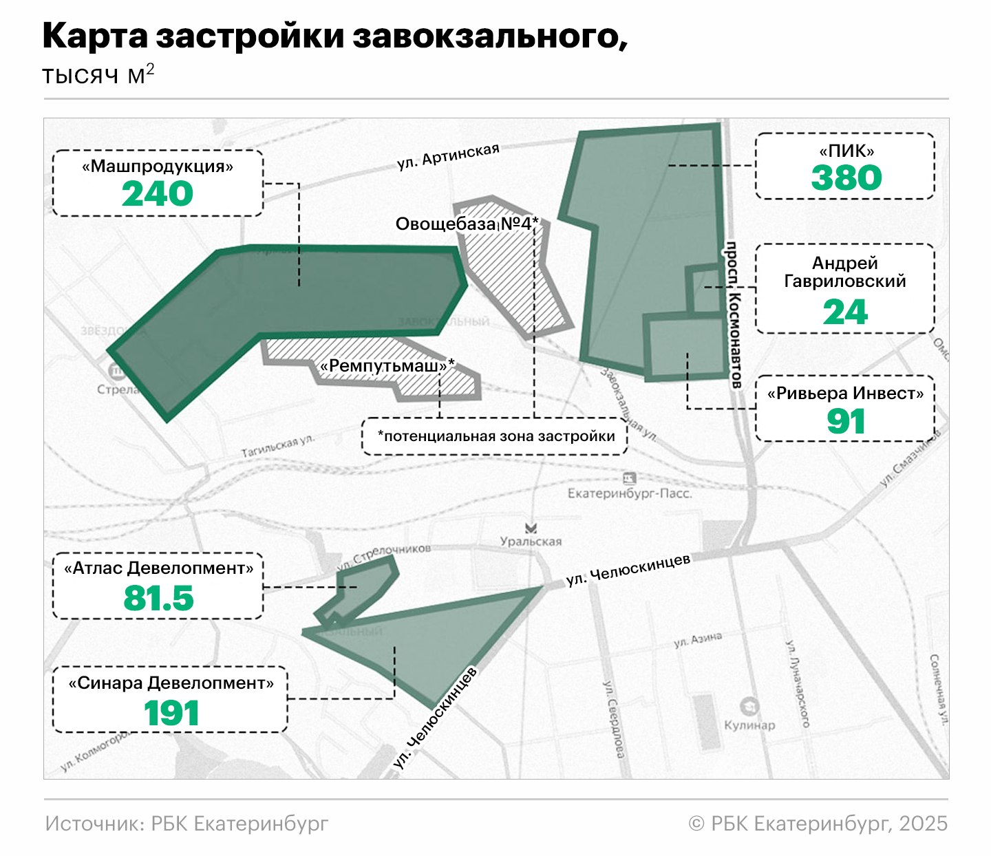 Как ранее писал РБК Екатеринбург, редевелопментом промзоны в Завокзальном районе занимаются сразу несколько застройщиков. На соседней с базой «Стрела» территории Товарного двора компания «Синара-Девелопмент» будет возводить квартал «Тихий центр». В проект застройки территории также вошла компания «Гринвич-Недвижимость» предпринимателей Константина Погребинского и Игоря Заводовского.